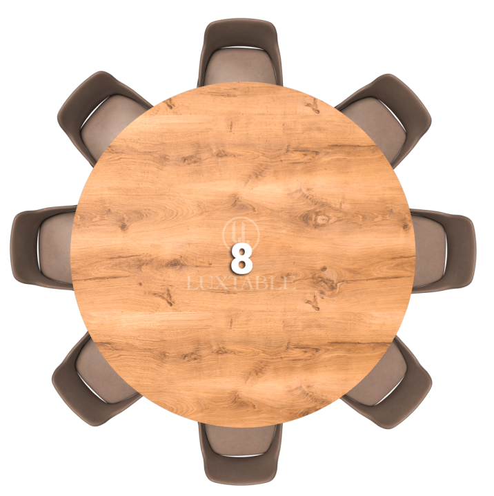 Il tavolo rotondo è un'opzione ideale per promuovere una conversazione intima e creare un ambiente accogliente. La forma arrotondata favorisce l'interazione tra le persone sedute intorno ad esso, mentre il noce europeo e la resina fumè trasparente lucida donano al tavolo un aspetto lussuoso e invitante.